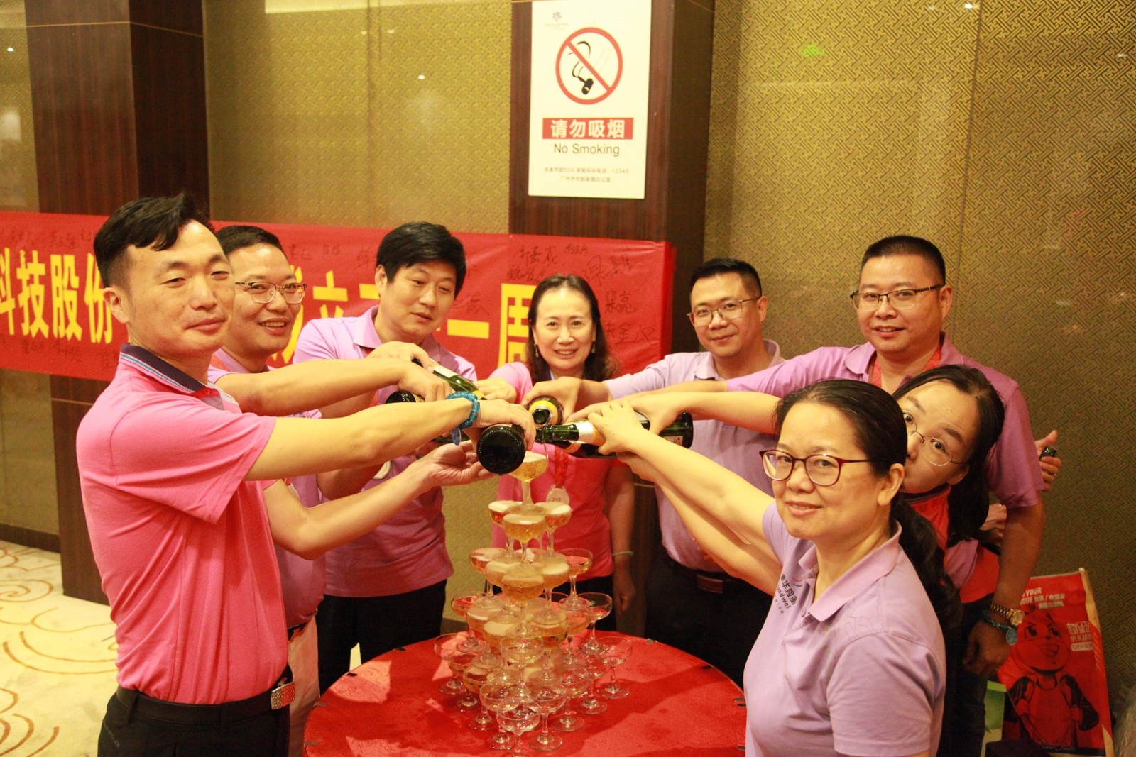 聲華全體員工還為8月份出生的2名員工慶祝生日,開香檳切蛋糕,與聲華的21歲生日同慶。